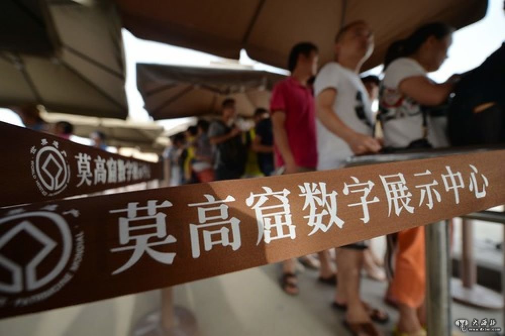 游客在莫高窟数字展示中心排队等待参观(2016年8月4日摄)。