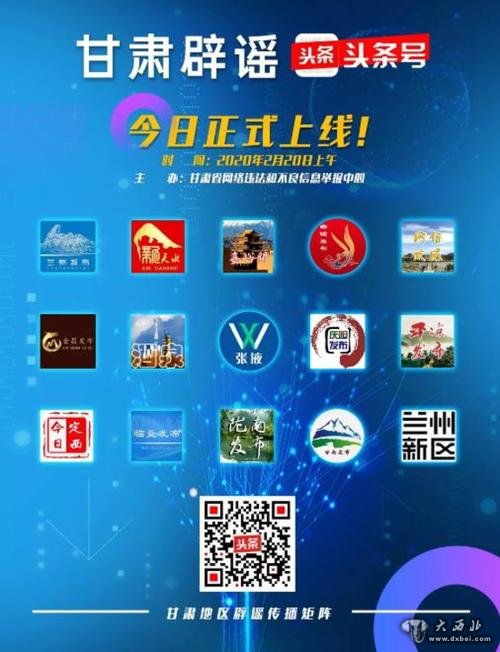 20日上午,“甘肃辟谣”头条号正式开通,有579个各级各类头条号、微信公众号、官方微博等账号平台响应加盟的甘肃地区辟谣传播矩阵也将同步启动。