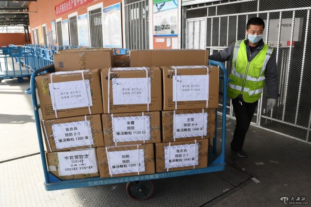 当日,一架满载药品、口罩、防护服等防疫物资的货运专机从兰州中川国际机场起飞前往武汉。这架货机上不仅搭载着甘肃省卫生健康委员会为医务工作者和新冠肺炎患者调配的系列中医药预防和治疗方剂,还搭载有甘肃部分单位、企业捐赠的药品、蔬菜、水果等物资以及甘肃援助湖北医疗队的生活物资。