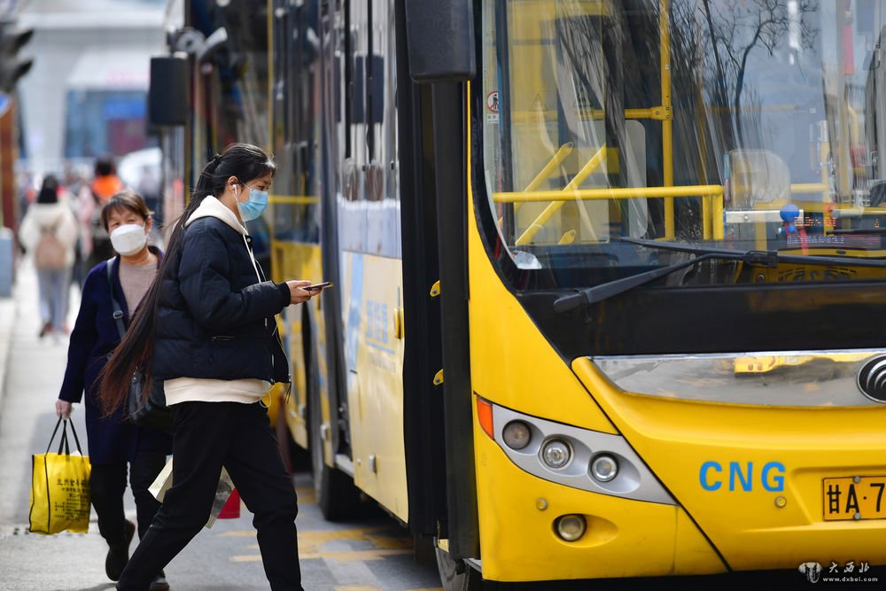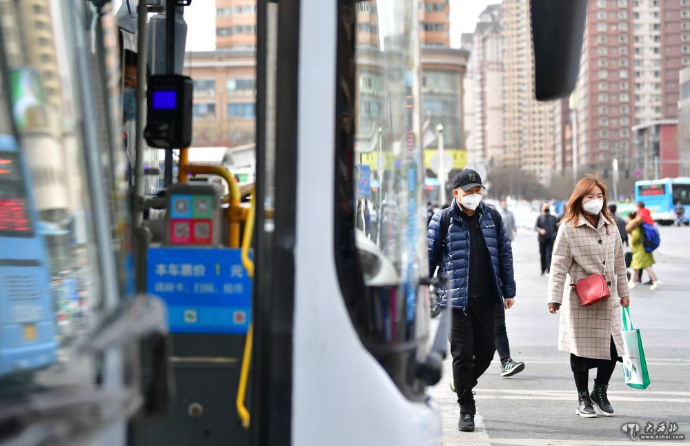 3月2日,在兰州街头,乘客准备乘坐公交车出行。新华社记者陈斌摄