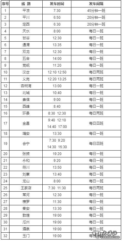 兰州汽车西站发往刘家峡、会宁、河畔、平川、华藏寺、炭山岭班线正常发班。
