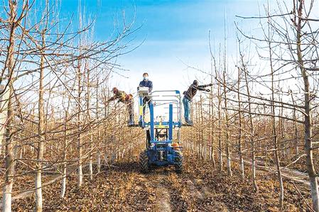 甘肃农垦条山农场职工进行果树春季修剪。甘肃农垦集团公司供图