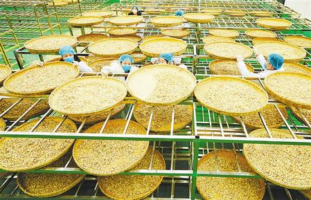 3月5日,宕昌县福江源药业科技有限责任公司的工人在晾晒黄芪饮片。为了做大做强全县药农合作社,办好办实中药材产业,该县抓住“三变”改革的契机,集中连片流转北部5个乡镇58个村土地23779亩,种植当归、党参、黄芪、大黄等中药材,带动5个乡镇千余贫困户稳定增收。新甘肃·甘肃日报通讯员 刘辉
