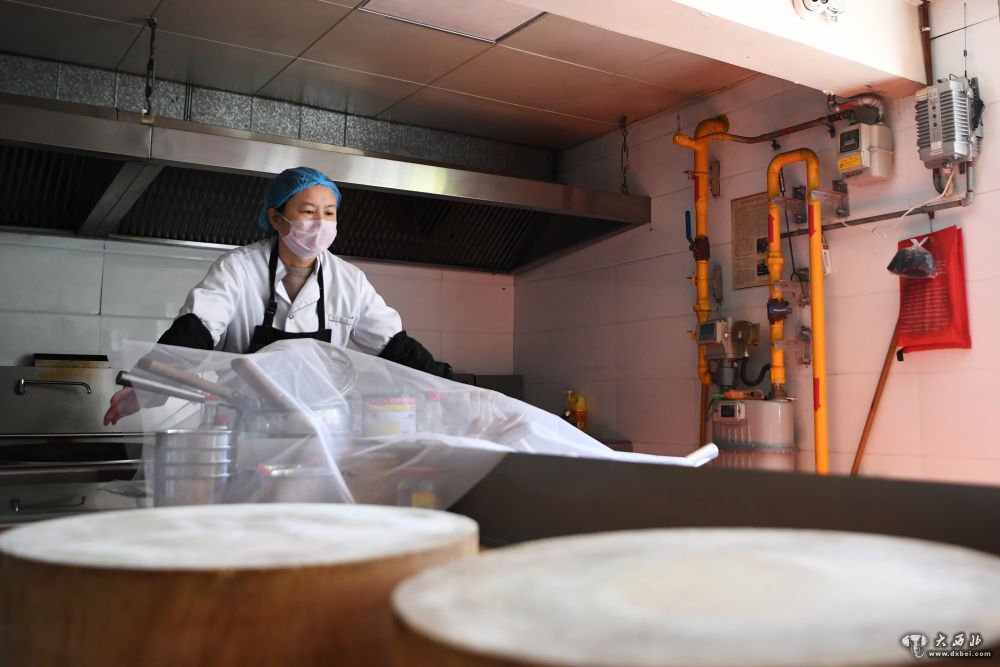 4月8日,兰州二中教工食堂工作人员整理操作间。新华社记者陈斌摄
