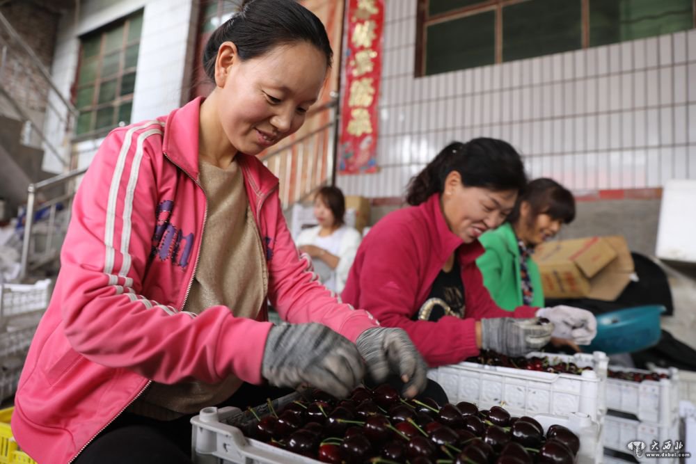 6月20日,在天水市秦州区藉口镇的一处市场,当地农户在分选樱桃。新华社记者多蕾摄
