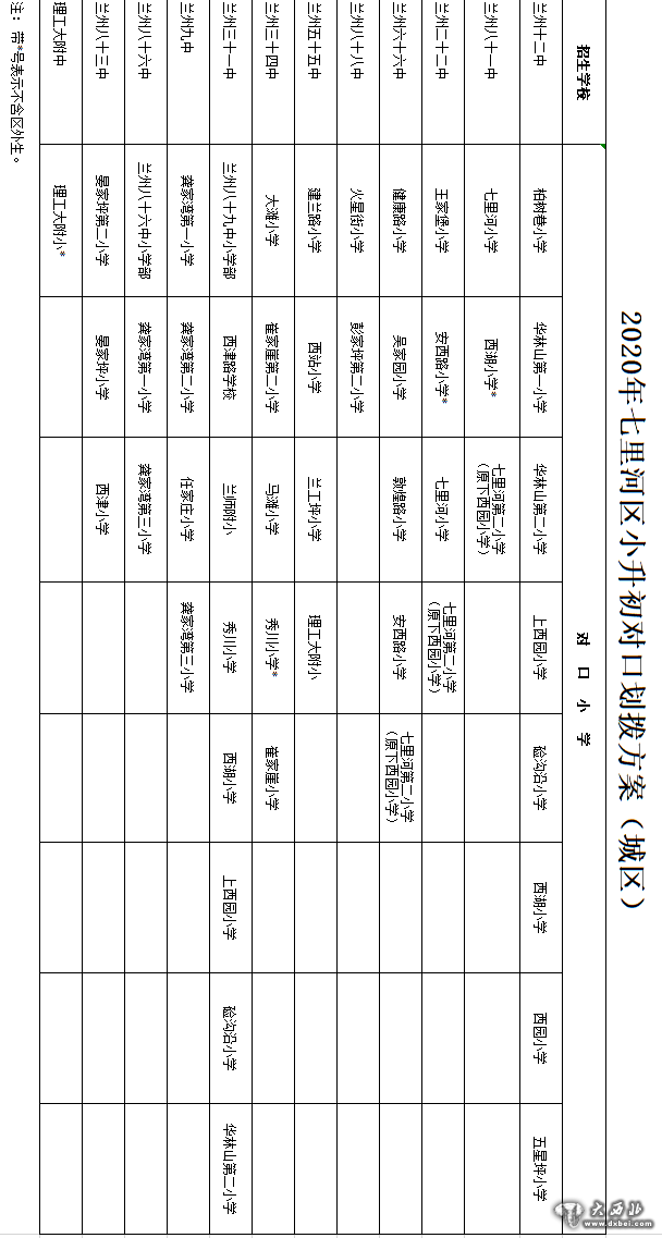 兰大附校:户籍在天水路(包括)以西,定西路(包括)以北,排洪沟以西的学生到兰州市第十一中学。其余学生到兰州市第七中学(含三十七中学)。