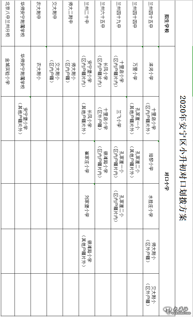 银滩路小学:小学招生片内安宁户籍的学生划拨到兰州六十五中;其余学生划拨到兰州二十中。