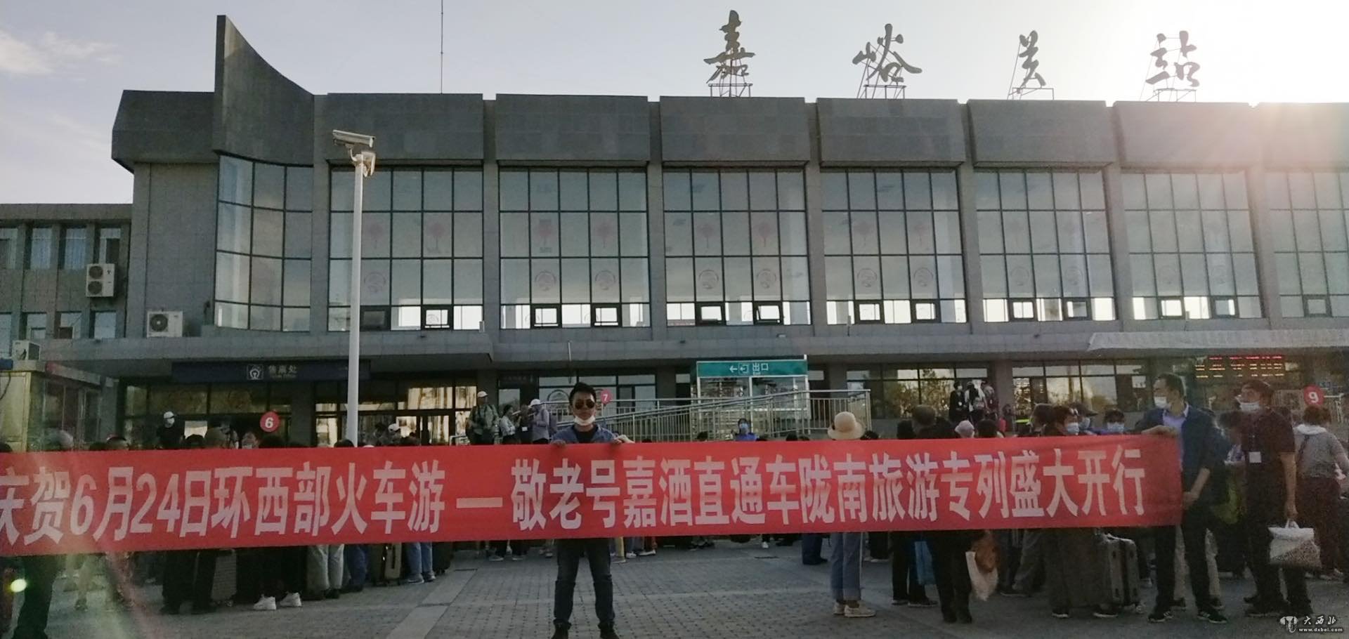 大 西 北 网 讯(记者孙雅彬  特约记者强科) 6月24日傍晚,金色的晚霞把车站和广场上的游客们脸上映衬得喜气洋洋。在欢快的氛围中,近400余名游客在兰铁工作人员的热情引导和旅行社的周密组织下,有序进入嘉峪关火车站。20点15分,伴随着火车鸣笛声,游客们开启了“陇上江南”欢乐之旅。