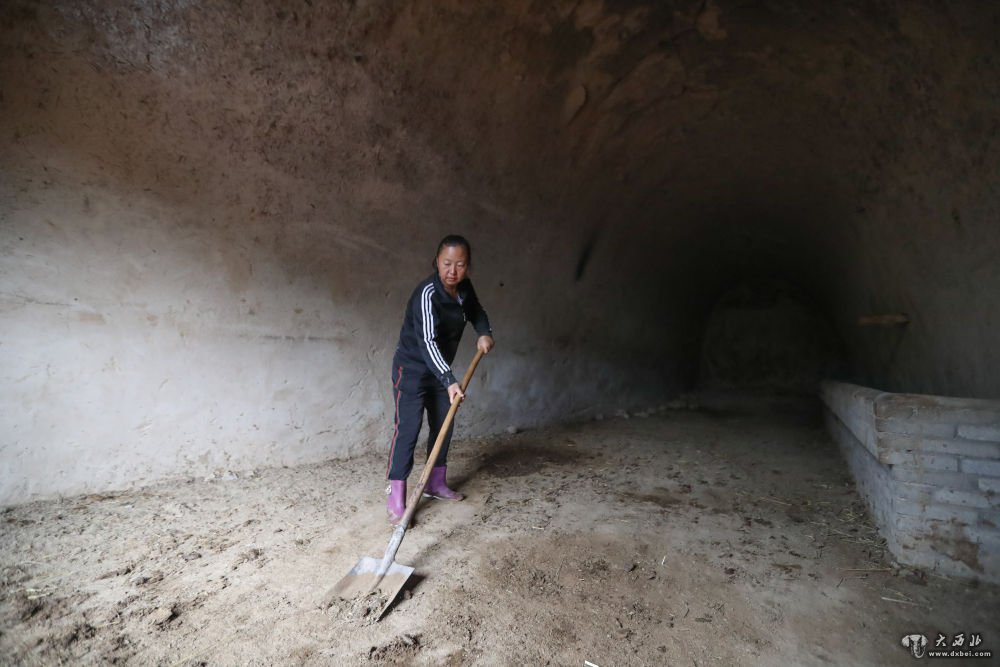 7月12日,在甘肃省崇信县锦屏镇的窑洞“托牛所”里,朱海萍在打扫窑洞卫生。新华社发(马希平摄)