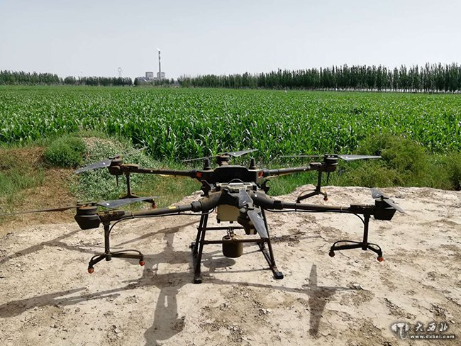 鑫报/大西北网讯   “突突突突……”伴随着一阵旋翼转动声,一架无人机从千亩大田的上方飞过,循着设定的航线,喷洒出雾状水汽,气压“吹散”了玉米秆,水汽洒入玉米苗。这是7月22日,兰州石化三联公司景泰农场对8900亩玉米进行现场喷药的一幕,这也是景泰农场首次使用无人机高空喷洒农药。