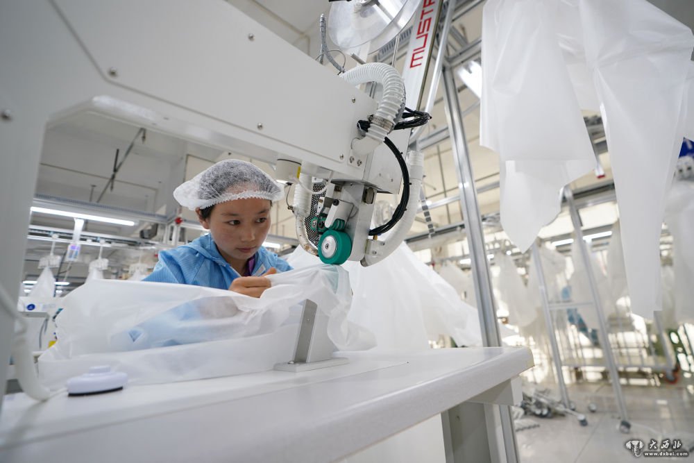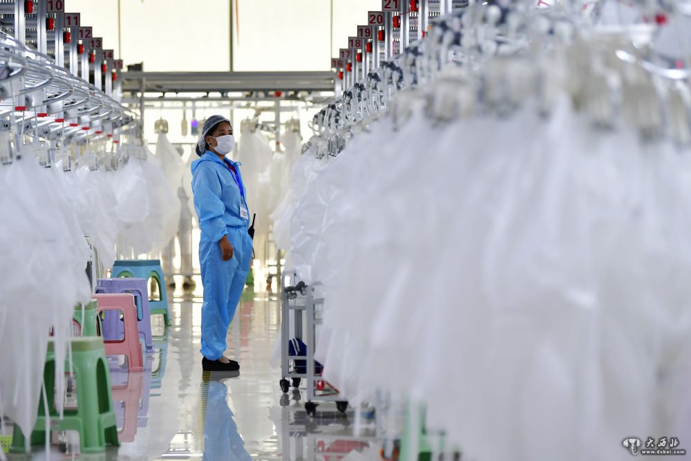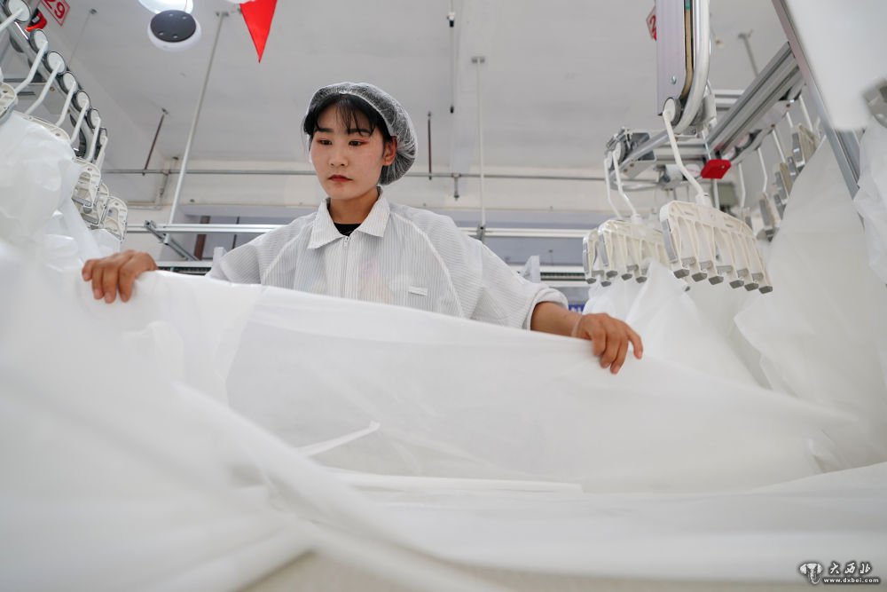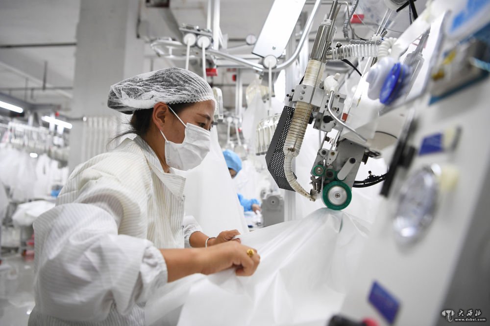 8月9日,甘肃拓奇扶贫车间的员工在服装加工生产线上作业。新华社记者邢广利摄