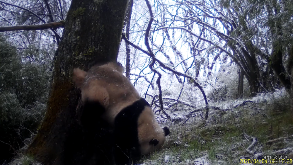 在公布的视频资料中,有一台红外相机在3月28日、4月4日拍摄到不同的野生大熊猫个体“倒立撒尿”的画面。在同一地点,两只大熊猫分别发出了各自的“求爱”信号。两只大熊猫的动作基本一致:先到树根附近闻气味,然后背向树干,前爪扶着地面,后爪踩着树干,慢慢挪动身体,直到倒立动作完成后开始撒尿,结束后离去。