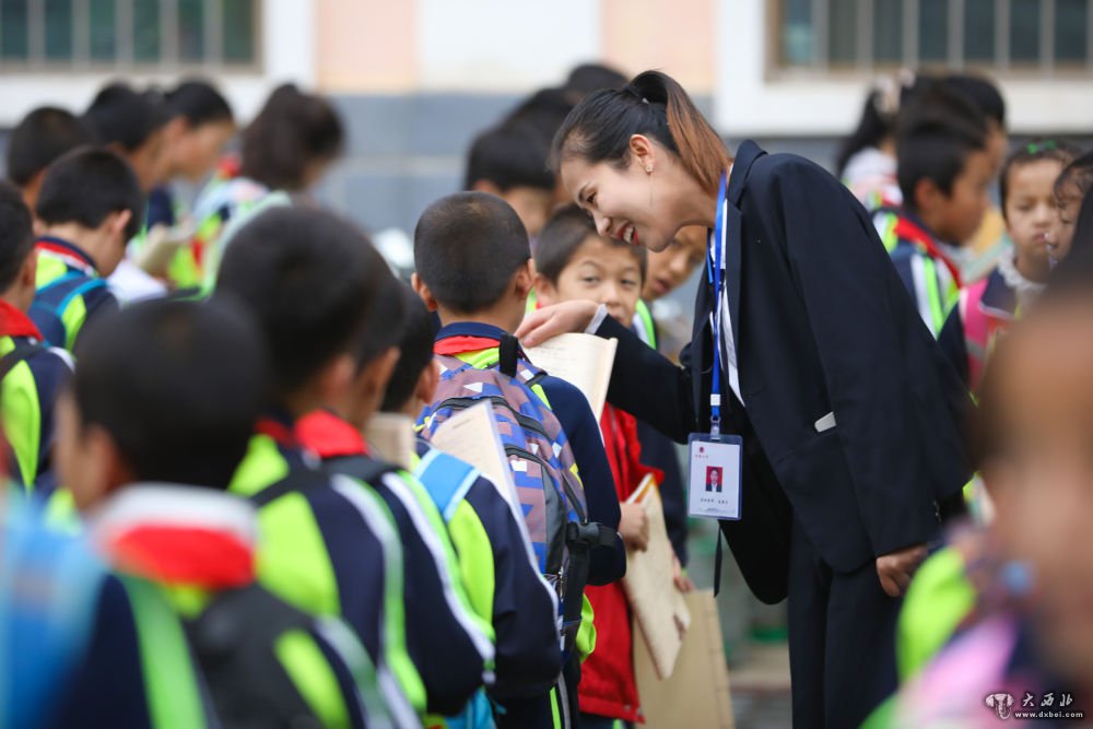 9月9日,在东乡族自治县实验小学,唐梅兰辅导学生上早读课。新华社记者马希平摄