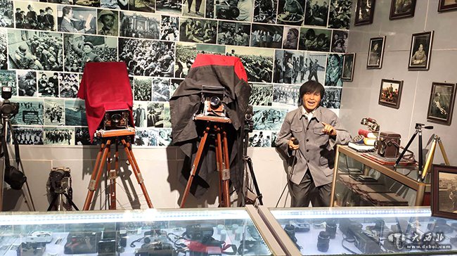 卧室炕上坐着一位正在纺线的老奶奶,炕上还睡着一个婴儿。值得一说的是民俗馆的蜡像人,无论是灶房的里的“媳妇”、还是卧室内的“婆婆”,(还有后面照相馆的师傅)制作得都很逼真,人物衣着、面部表情及身上皮肤栩栩如生,几乎可以以假乱真……