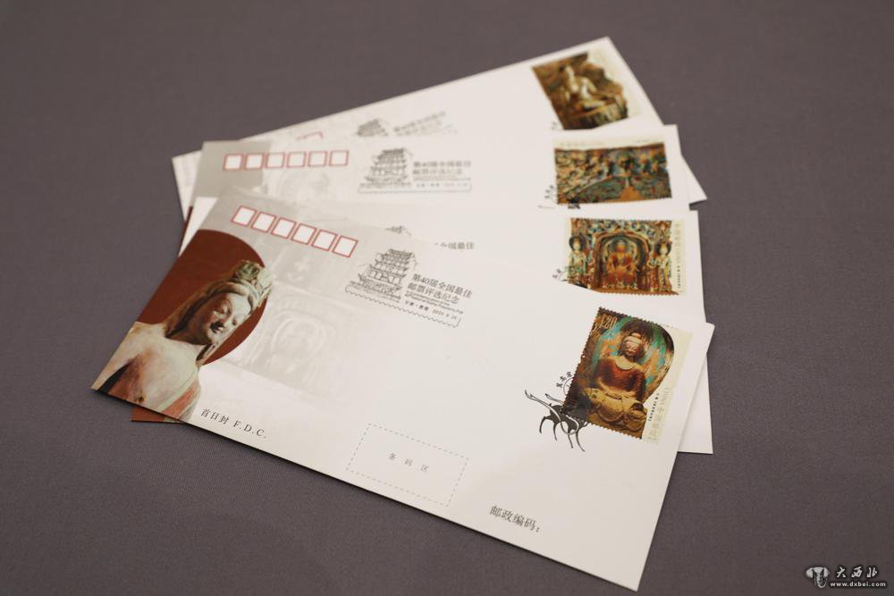 这是9月26日在甘肃省敦煌市拍摄的贴有《莫高窟》特种邮票的首日封。新华社记者李杰摄