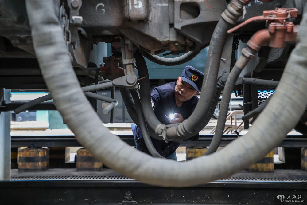 国庆假期到来,兰州车辆段千余名像曹亚民这样的“火车医生”坚守岗位,为列车进行“全面体检”,确保列车运行安全。