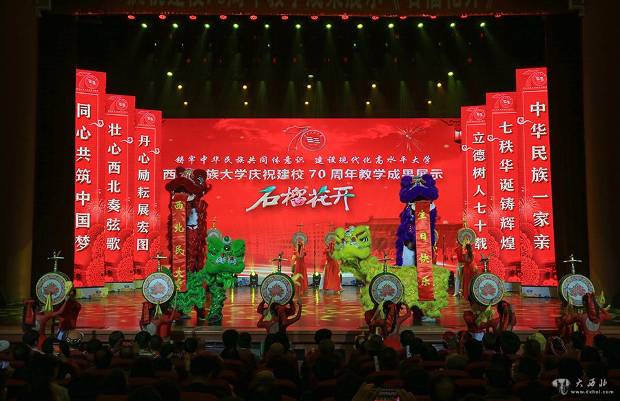 10月15日晚8时,西北民族大学西北新村校区大礼堂灯光璀璨,一场主题为《石榴花开》的庆祝西北民族大学建校70周年教学成果展示艺术盛宴精彩上演。国家民委党组副书记、副主任刘慧,甘肃省委常委、统战部部长、省政协党组副书记马廷礼,国家民委、甘肃省、兰州市有关方面负责人,兄弟院校领导、校友代表、师生代表观看成果展示。
