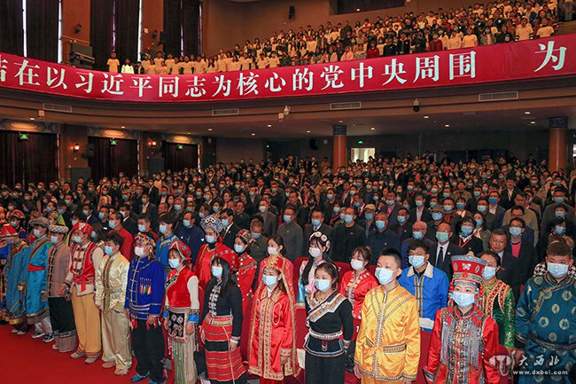 2020年10月16日上午9时,“铸牢中华民族共同体意识,建设现代化高水平大学——西北民族大学建校70周年纪念大会”在西北新村校区大礼堂举行。全体起立,奏唱国歌。