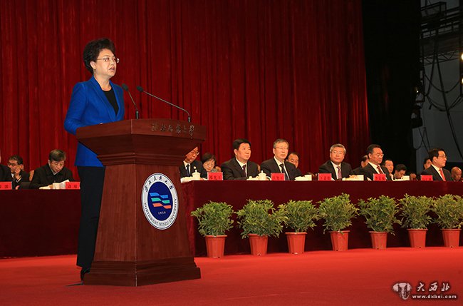 刘慧在西北民族大学建校70周年纪念大会上致词。 贾笑云 摄
