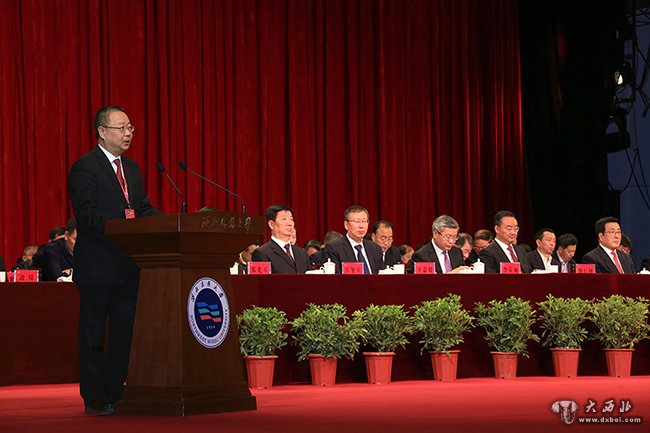 唐仁健在西北民族大学建校70周年纪念大会上致词。 贾笑云 摄