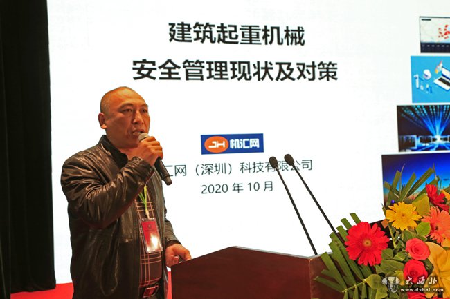 机汇网董事长田作留作建筑机械安全管理演讲。 贾笑云 摄