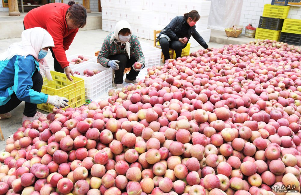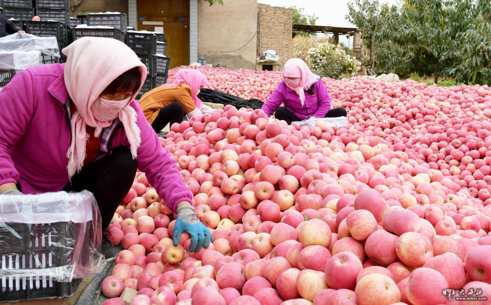 10月26日,甘肃省临夏回族自治州永靖县岘塬镇姬川村的果农在分拣苹果。新华社发(史有东摄)