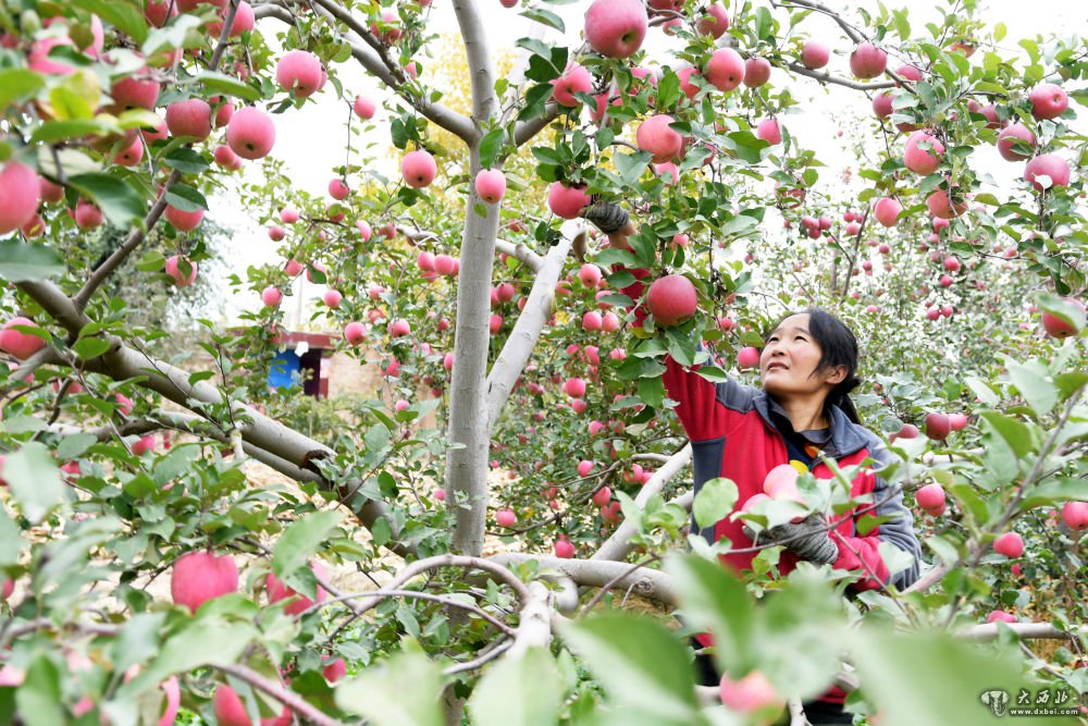 10月26日,甘肃省临夏回族自治州永靖县岘塬镇姬川村的果农在采摘苹果。新华社发(史有东摄)