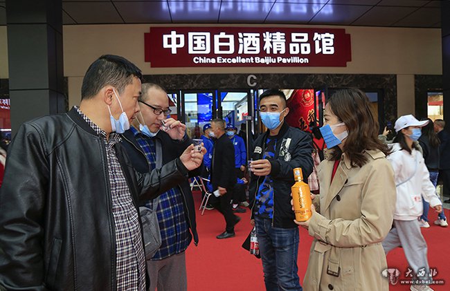 酒博会观展游客现场品尝皇台窖底原浆18酒。 贾笑云 摄