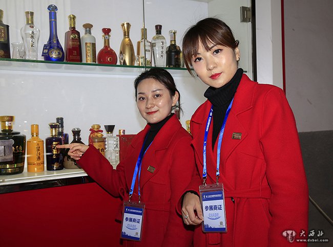 酒博会现场工作人员为参观者介绍获青酌奖的皇台窖底原浆18酒。 贾笑云 摄