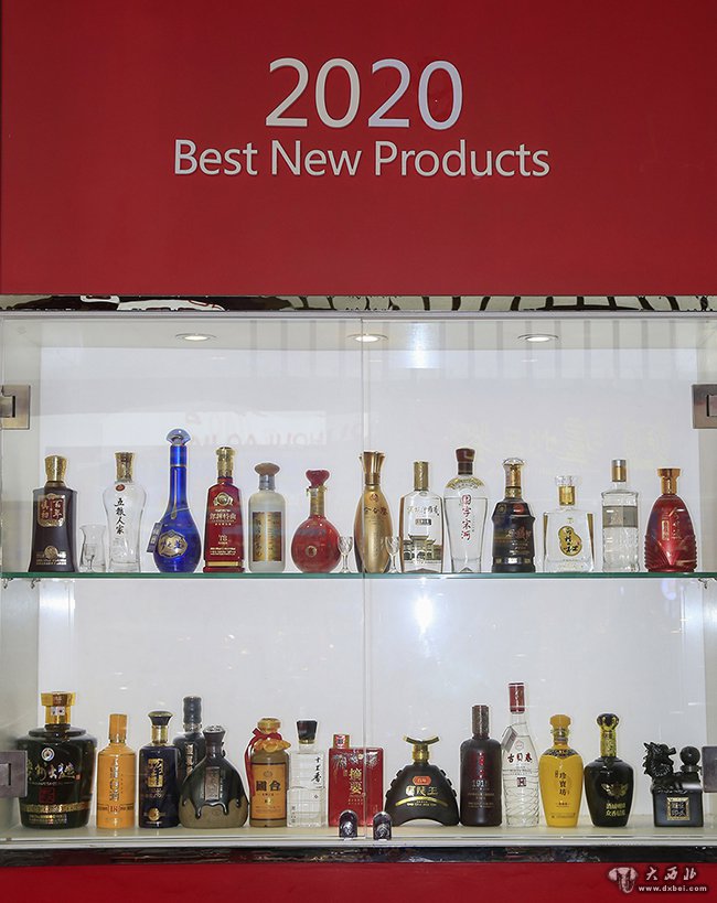 酒博会上2020年最佳白酒新品展示区(第二排左二为皇台窖底原浆18酒)。 贾笑云 摄