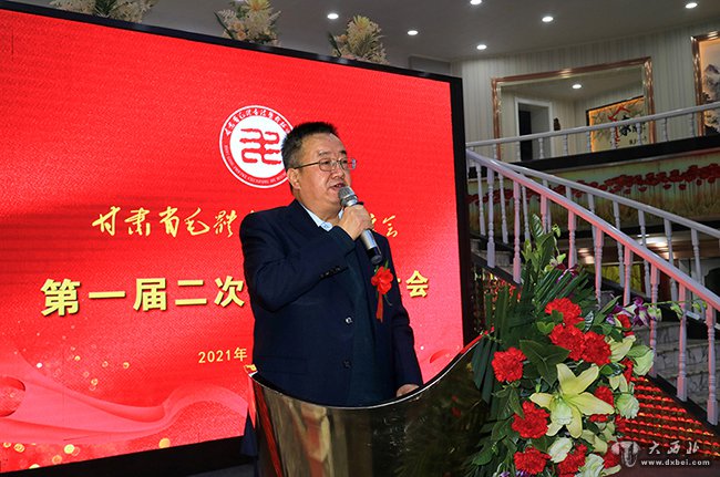 甘肃省毛体书法艺术研究会主席薛明福致词。 贾笑云 摄