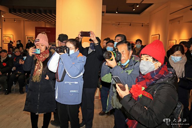 甘肃陇东农民画作品展开幕式媒体记者。 贾笑云 摄