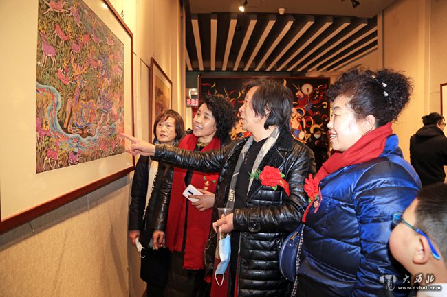 甘肃陇东农民画作品展开幕式现场。 贾笑云 摄