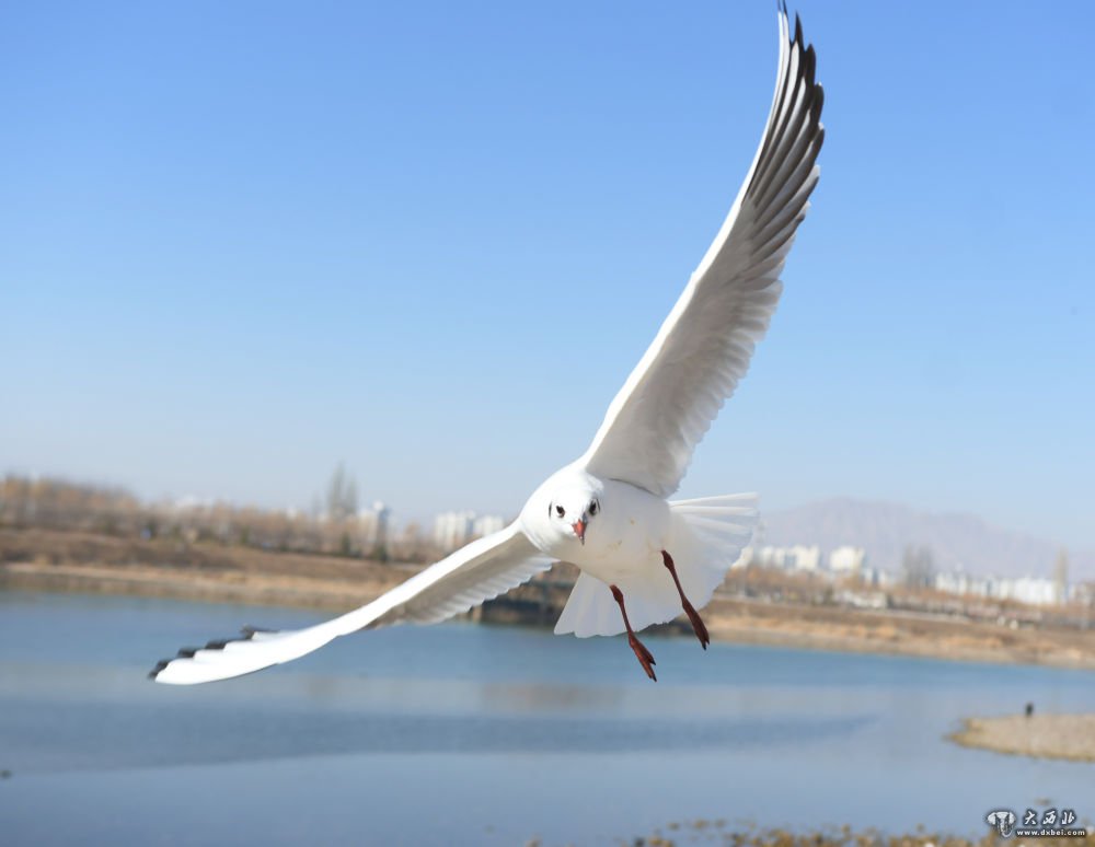 1月18日,红嘴鸥在甘肃省临夏回族自治州永靖县刘家峡镇上空飞翔。新华社发(史有东摄)