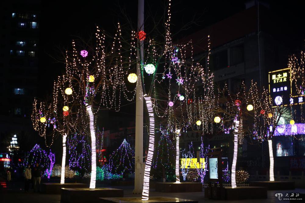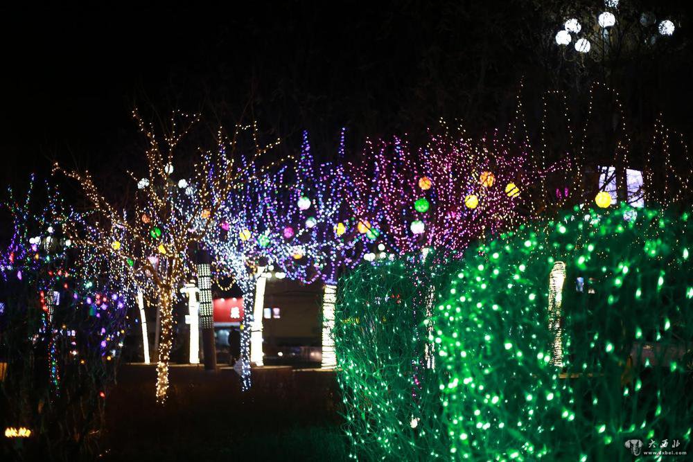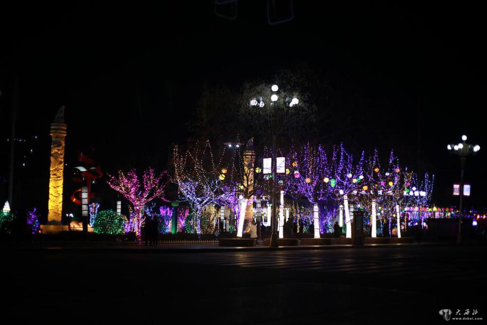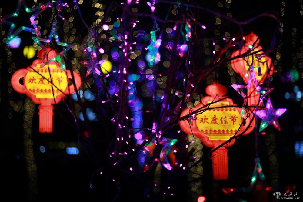 春节临近,夜晚来临,通渭县文化广场张灯结彩,流光溢彩,市民们结伴散步、拍照,大街小巷处处洋溢着欢乐祥和的“过年味道”。