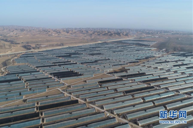 这是2月4日在靖远县北湾镇新坪村拍摄的蔬菜大棚(无人机照片)。新华社记者 张睿 摄