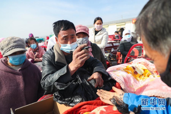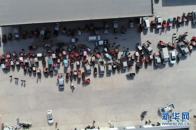 这是2月4日在靖远县北湾镇新坪村农贸市场拍摄的交易现场(无人机照片)。新华社记者 张睿 摄