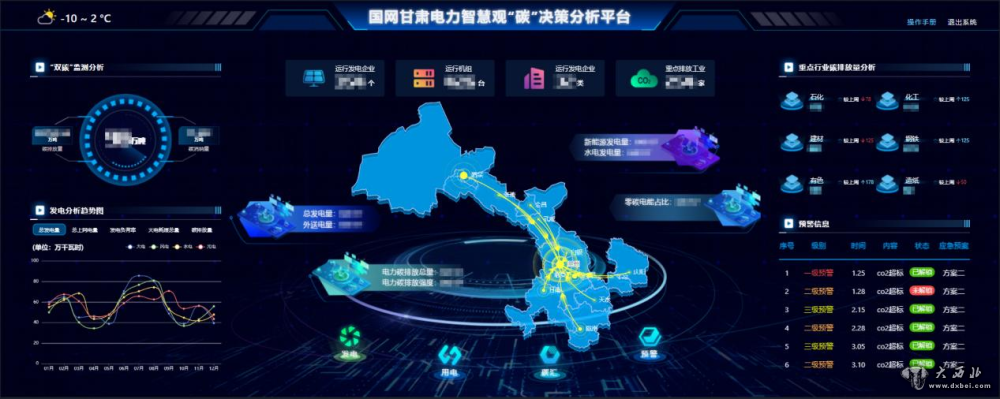 日前,国家电网甘肃省电力公司依托全省发电企业、重点排碳行业、能源结构等数据,搭建了碳排放、碳减排监测体系。该体系将对甘肃的碳排放、碳减排进行实时“全景画像”,助推甘肃省能源转型和绿色发展。