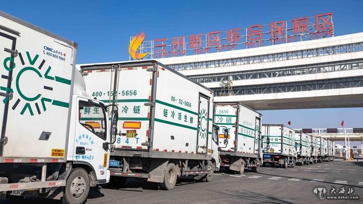 2020年11月5日,生鲜冷链货车进入兰州新区综合保税区。新华社发(通联照片)