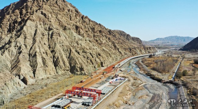 一年之计在于春,甘肃省张掖市肃南裕固族自治县境内的S18张掖至肃南公路张掖至康乐段工程梨园河3号特大桥正在加紧施工。