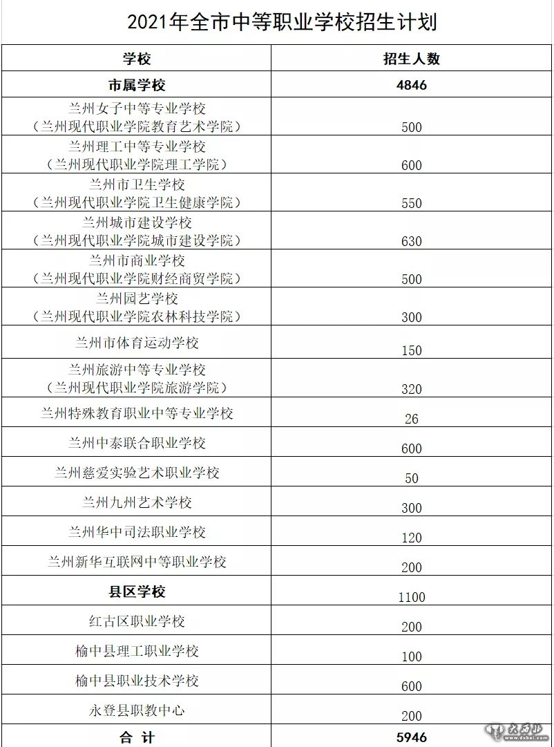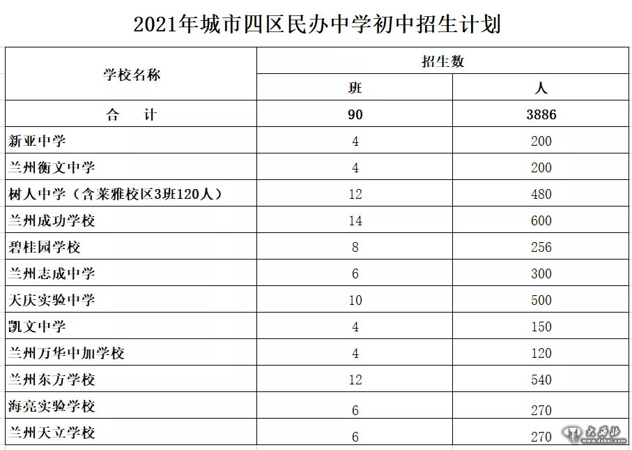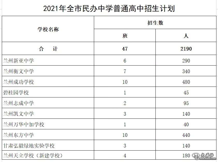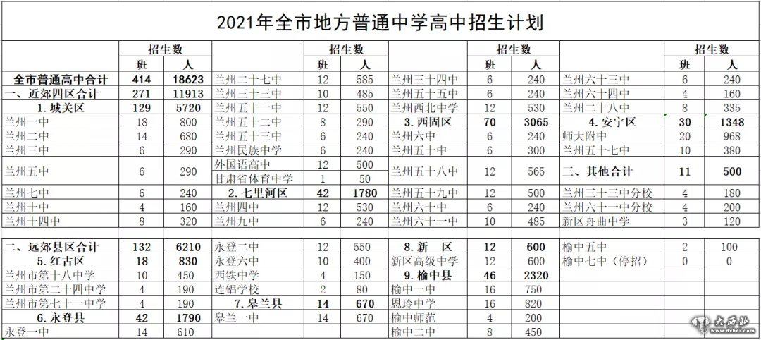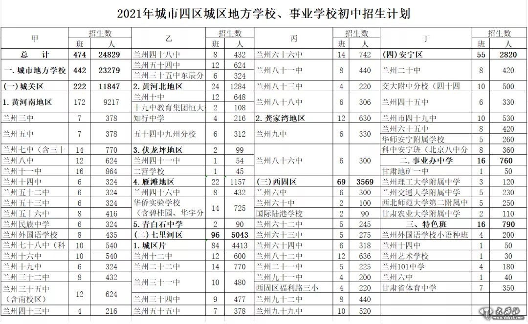 2021年兰州市初高中招生计划