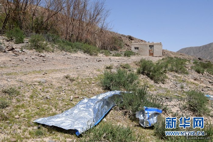 这是5月24日拍摄的参加甘肃白银市景泰第四届黄河石林山地马拉松百公里越野赛的选手躲避恶劣天气的一处废弃房屋。新华社记者 范培珅 摄
