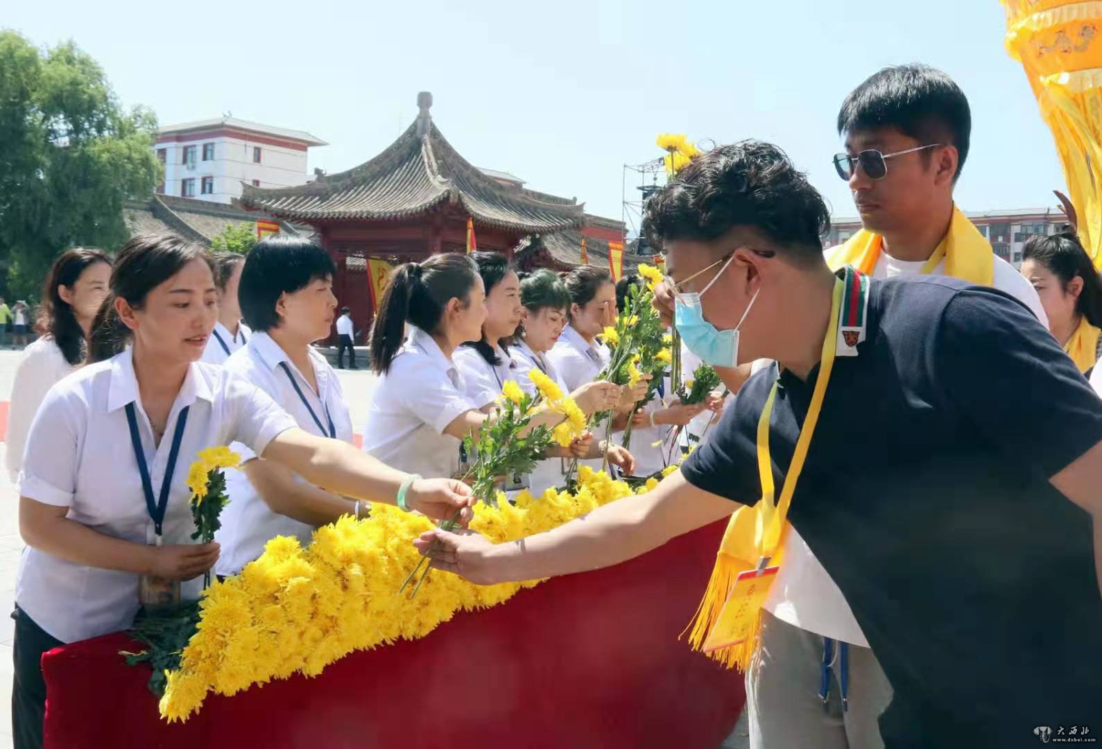 乐舞告祭后,参加大典的嘉宾陆续缓步走进伏羲庙,敬献花篮、瞻仰伏羲圣像。各界代表排队前往伏羲庙拜谒伏羲圣像,感怀伏羲圣德。