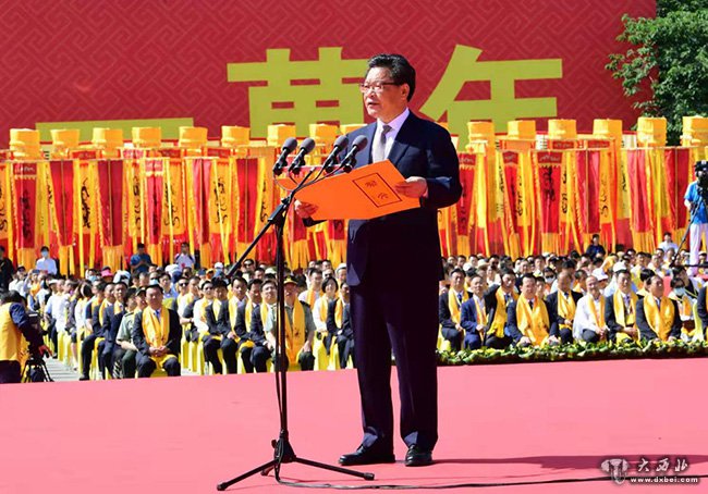 9时50分,甘肃省政协主席欧阳坚宣布公祭伏羲大典正式开始。