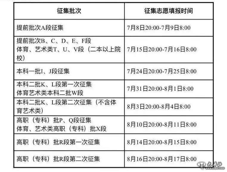 三、征集志愿时间安排