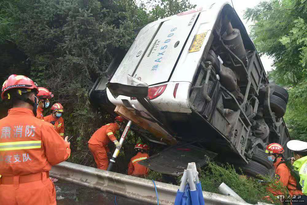新华社兰州7月26日电(记者梁军、崔翰超)记者从甘肃省平凉市委宣传部了解到,26日14时,由郑州发往新疆大巴车(车牌号豫AX5006,核载63人,实载63人)行驶到青兰高速平凉泾川境内(距泾川服务区500米处)发生侧翻。事故已造成13人死亡,45人送往医院救治,2人无碍。3名涉事人员已被控制。