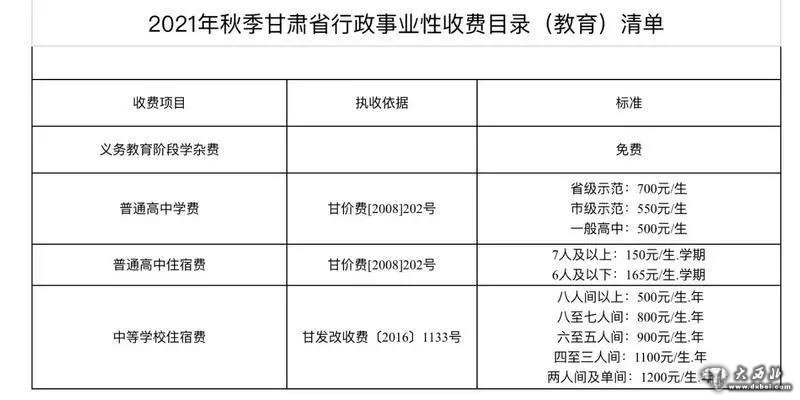 根据2021年秋季甘肃省行政事业性收费目录(教育)清单,全省中小学收费标准分别为:
