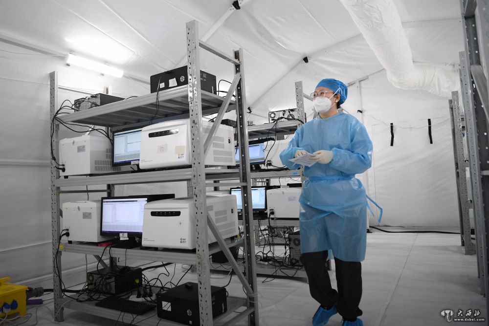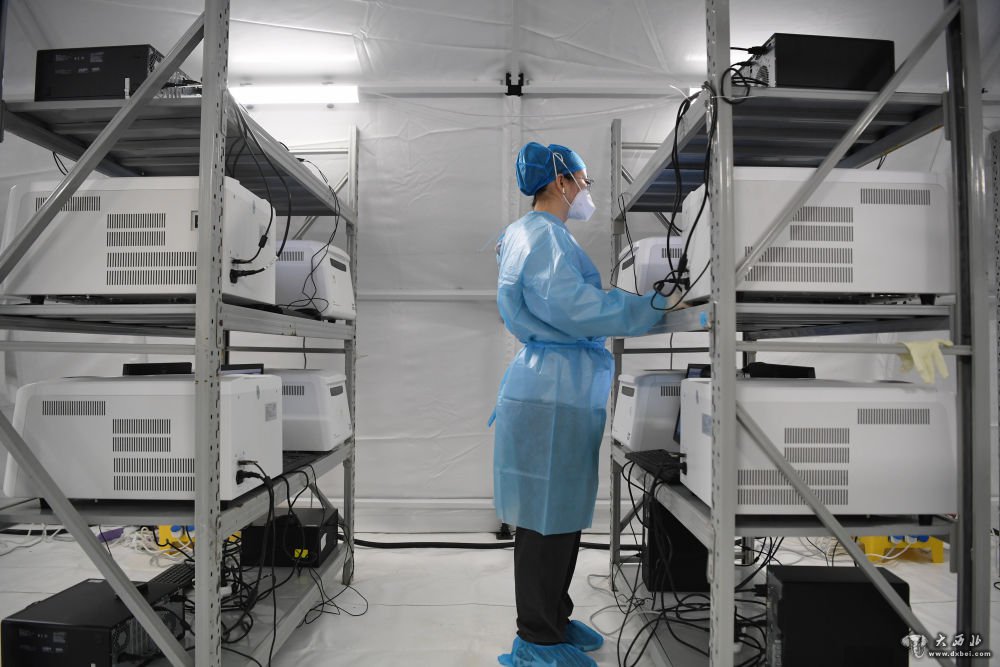 据了解,此次在兰州投用的“猎鹰号”硬气膜实验室,配备1个试剂准备区、2个样本处理区和2个扩增分析区,64台PCR扩增仪24小时运转,可实现试剂配置、加样、提取、扩增自动化,日最高核酸检测能力可达8万管,按10混1采样方式,每天最多可检测80万人次。