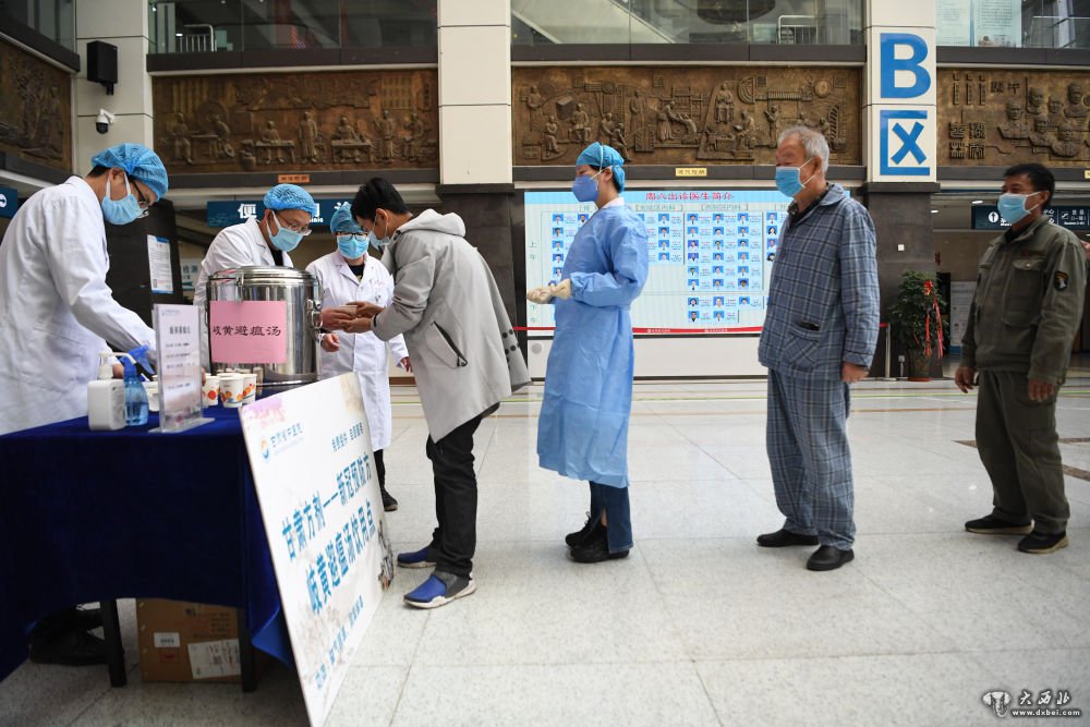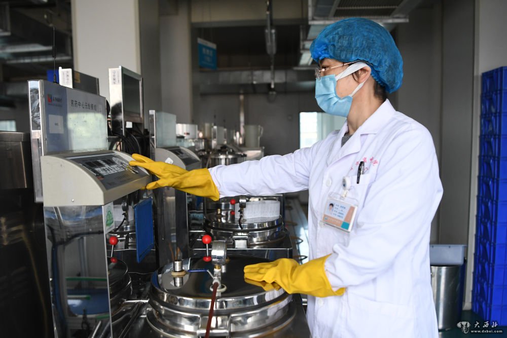 近日,甘肃省卫健委会同国家医疗救治指导组中医药专家研究制定了最新的中医药预防新冠肺炎配方,甘肃省中医院等医疗机构发挥中医药特色优势,加紧熬制新冠肺炎预防汤剂,在医院门诊大厅等场所为市民免费发放,并提供给集中隔离人员、医务工作者和疫情防控一线工作人员服用,助力抗击疫情。新华社记者陈斌摄