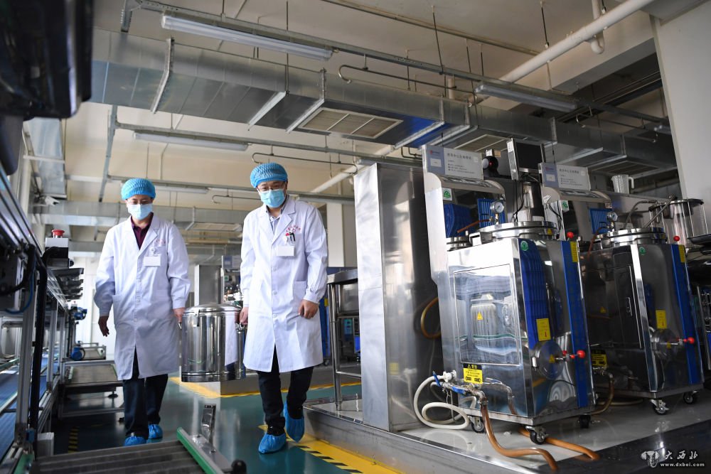 10月23日,在甘肃省中医院药学部煎药室,药师在搬运熬制好的新冠肺炎预防汤剂。新华社记者陈斌摄